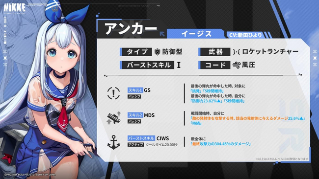 アンカーは発射体の破壊に特化した能力を持つニケです。