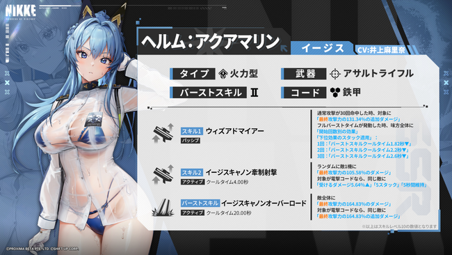ヘルム:アクアマリンは、部隊のバーストスキルをより頻繁に使用できるようにしてくれるニケです。