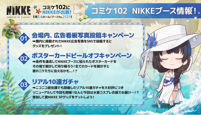 『NIKKE』サマーガールが複数名が出演しますので、コミケ102に訪れる際は、ぜひ『NIKKE』ブースに立ち寄り、特別な体験を楽しんでください。