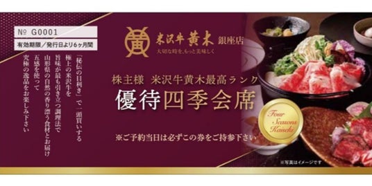 ■米沢牛黄木 銀座店 黄木最高ランク 優待四季会席 ペア食事券
