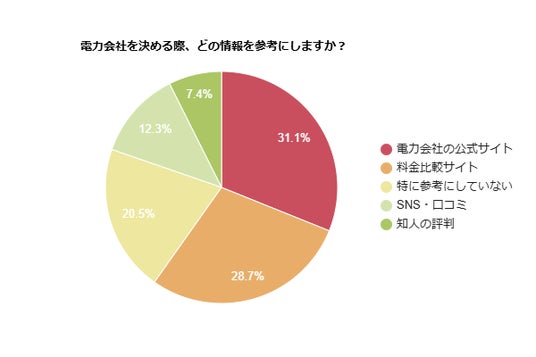 - 約31%の人が「公式サイト」を参考に電力会社を選んだと回答