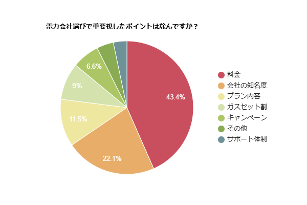 - 電力会社選びでは約43%の人が「料金の安さ」を重視している