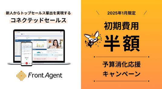 新人からトップセールスを輩出するコネクテッドセールス・プラットフォーム*「Front Agent」を開発・提供するUmee Technologies株式会社(本社:東京都調布市、代表取締役:新納 弘崇、以下「ユミー」)は、本日1月10日(金)より1月31日(金)まで、【初期費用半額】予算消化応援キャンペーンを開始いたします。