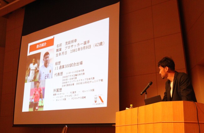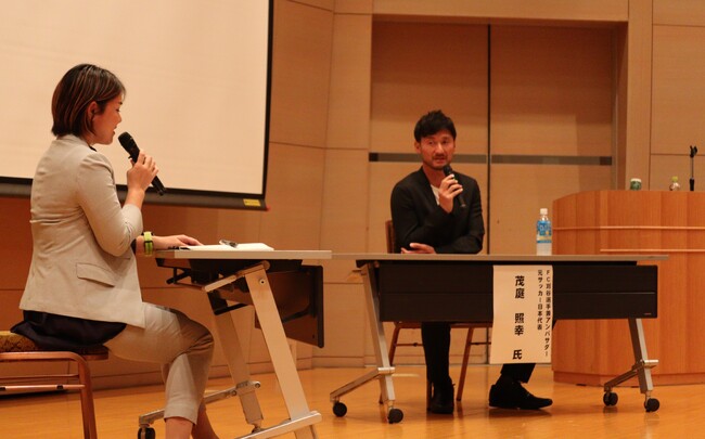 プロになってからではなく子どもの頃から食事を意識し、現在42歳になってもプレーを続けられる秘訣や、自身の経験から学んできた今の子どもたちに伝えたいことや、二人の子どもの父として保護者へのアドバイスを茂庭選手らしくユーモアを交えながら、講義とトークセッションを行いました。