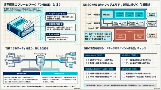 株式会社パタンナー(本社:東京都品川区、代表取締役:深野 嗣)は、世界標準のデータマネジメント知識体系である「DMBOK」を実務レベルで図解・解説した実践ガイド『【AI時代の必須教養】図解で読み解く"DMBOK" データマネジメントの設計図』を公開いたしました。