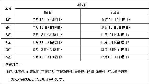 ・募集期間 令和5年5月9日(火曜日)9時00分から各回【1回目】測定日の2週間前まで