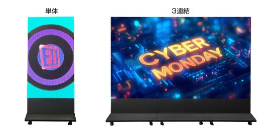 横連結も可能で、3台をつなげることで16:9に近い比率の横長画面として使用できます。