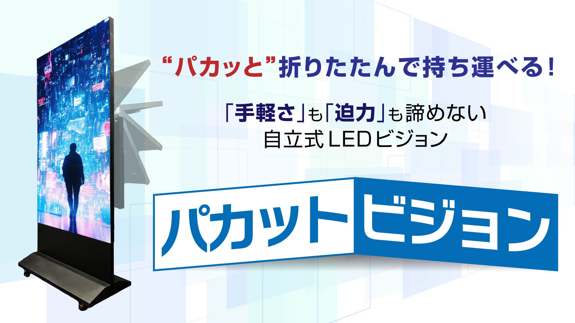 この度、株式会社インターコスモスは、折りたたんで持ち運べる新発想の自立式LEDビジョン「パカットビジョン」を発売いたしました。