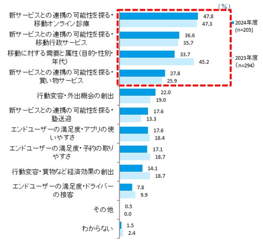 - データ解析では「移動オンライン診療」との連携意向が最多、サービス連携への関心が上位に