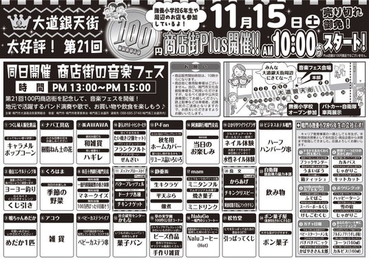 100円以外の商品やサービスも特別価格で提供!さらに今回は音楽フェスを同時開催します。