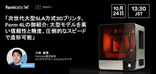 2024年10月24日 13:30から開催されるこのウェビナーでは、Form 4Lの革新技術や実機を使ったデモンストレーションが行われます。Form 4Lの生産性と品質を体験できる絶好の機会です。