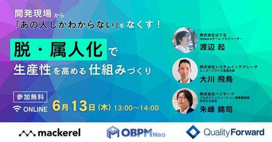 本セミナーでは、プロジェクト管理ツール「OBPM Neo」を提供する株式会社システムインテグレータ、テスト管理ツール「QualityForward」を提供する株式会社ベリサーブ、そしてSaaS型サーバー監視ツール「Mackerel」を提供する株式会社はてなの3社が、それぞれの視点から「システム開発組織の属人化をどう解決するか?」を解説します。