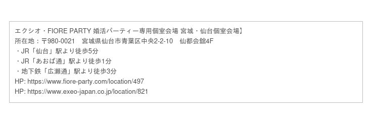 仙台個室会場で開催予定のGWのパーティー:https://www.exeo-japan.co.jp/location/821