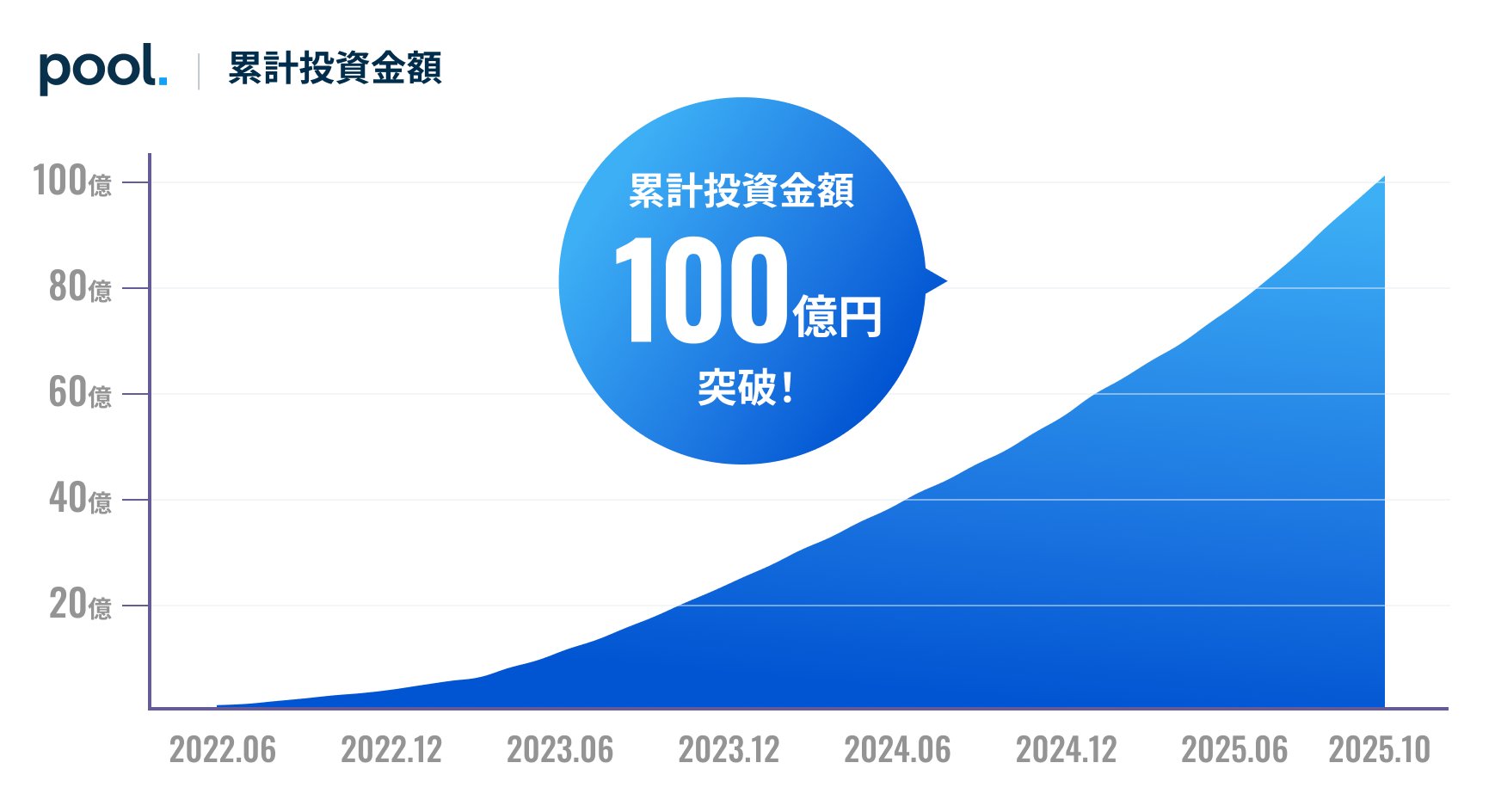 多くの皆さまにご支持いただき、「Pool」は累計投資金額100億円※を突破いたしました。(2025年10月現在) また、2022年6月の「Pool」のサービス開始以降、2025年10月末までに39ファンドの運用が終了。これまで正常運用率100%を継続しており、すべてのファンドで、運用終了時点のお客様の出資持分を全額返還し、予定分配金額もお支払いできる状態です。