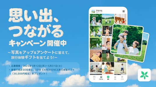 世界中の人々の時間を豊かにする株式会社TimeTree(本社:東京都新宿区、代表取締役社長:深川 泰斗)が提供するカレンダーシェアアプリ「TimeTree」は、2025年5月12日(月)より、TimeTreeの共有アルバム機能を活用したキャンペーン「思い出、つながるキャンペーン」を開催いたします。