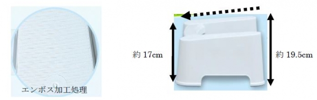 ・滑りにくいエンボス加工処理を施し、傾斜をつけることで、踏ん張りやすい形状