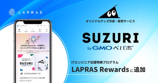 LAPRAS株式会社(所在地:東京都渋谷区、代表取締役:染谷健太郎、以下「LAPRAS」)は、ITエンジニアのアウトプットを支援する特典プログラム「LAPRAS Rewards」に、新たな特典として、GMOペパボ株式会社(代表取締役社長:佐藤 健太郎)が運営するオリジナルグッズ作成・販売サービス「SUZURI byGMOペパボ」を追加しました。