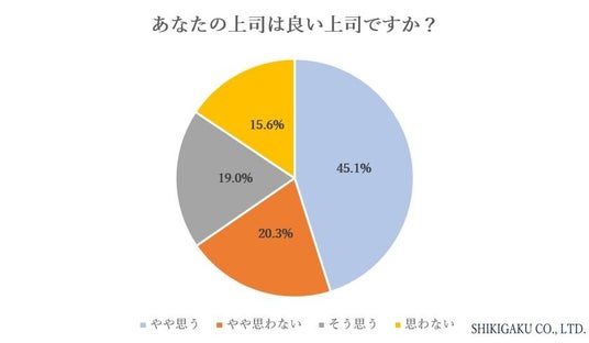 20代~30代の社会人に「自身の上司は良い上司か」と聞いたところ64%の方が自身の上司を良い上司だと「思う」または「やや思う」と回答しました。その理由としては「優しいから」が46.7%、「頼れるから」が41%、「成長させてくれるから」が35%との結果になりました。