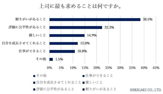 上司に求めることは「頼れること」38.5%・「評価に公平性があること」22.3% 4割以上が上司・部下の関係で悩んだことがあると回答。