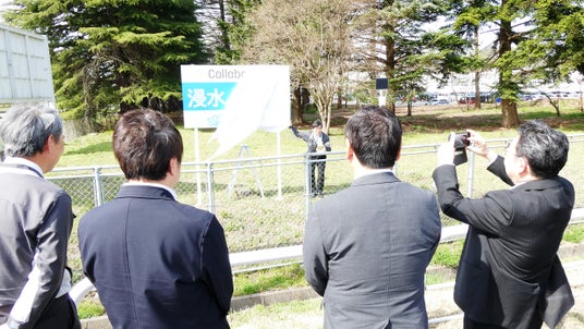 ワンコイン浸水センサ実証実験を視察する様子