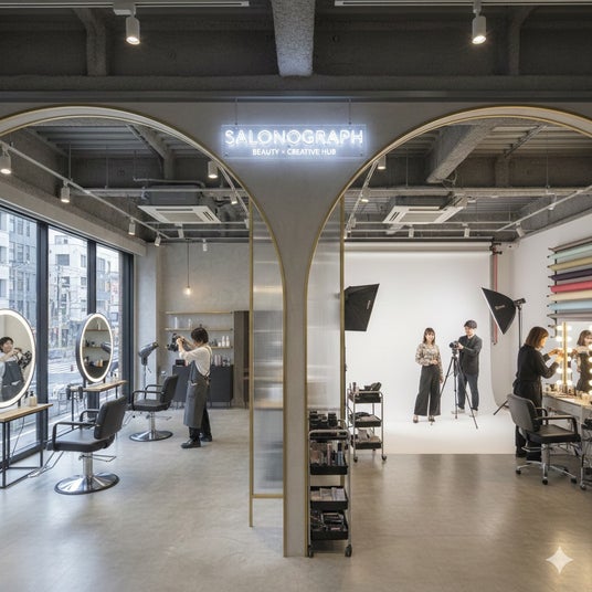 美容室の技術、撮影スタジオの設備、ヘアメイク専門職のクリエイティブを1つの空間に集約し、
