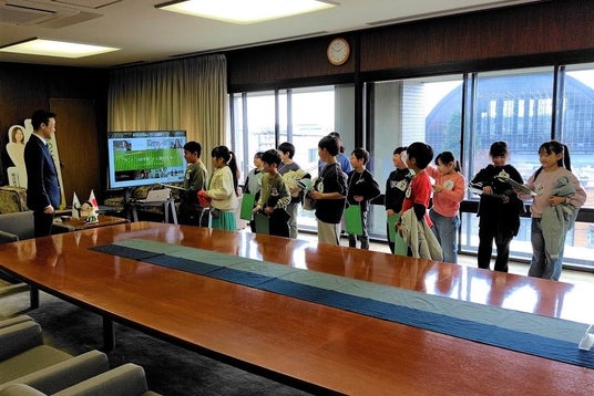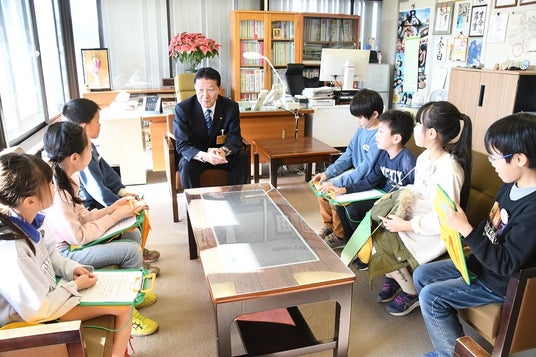 市長インタビュー。みんなドキドキしながら頑張りました!