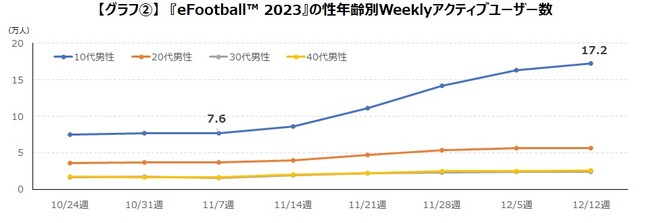 ■『eFootball™ 2023』で増加したアクティブユーザーは主に10代男性