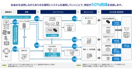 次世代コンタクトセンターへの取り組みから生まれたソリューションをラインアップ 生成AIの徹底活用によるデジタルハイブリッドセンター化で最大50%の問い合わせ削減へ