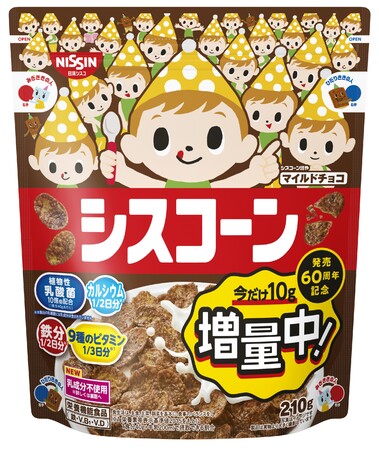 今回、日ごろのご愛顧への感謝の気持ちと“みんなの朝をもっとHappyに”という思いを込めて、「シスコーン」の定番2フレーバー (フロスト、マイルドチョコ) の内容量を10g増量するキャンペーンを実施します。