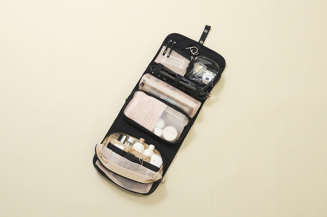 メイク道具や歯ブラシセットなど、用途別にアイテムを収納できます。