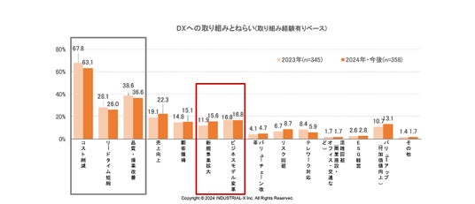 DXによる産業構造変革を推進する株式会社INDUSTRIAL-X(本社:東京都港区、代表取締役CEO:八子 知礼、以下INDUSTRIAL-X)は、「DX推進における課題と意向調査 2024年」を行いましたので結果をお知らせいたします。本調査は、現在(2024年6月)と昨年上半期(2023年4月~9月)の状況を比較することで、企業におけるDX推進状況の変化を明らかにし、企業経営に資するデータを提供することを目的に実施しました。