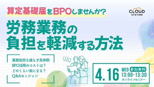 人事労務分野のシステム活用・導入支援を手掛ける株式会社TECO Design(本社:東京都新宿区、代表取締役社長 : 杉野 愼)は、運営しているショールーム「CLOUD STATION」にて、無料オンラインセミナー『算定基礎届をBPOしませんか? 労務業務の負担を軽減する方法』を2025年4月16日(水)に開催いたします。