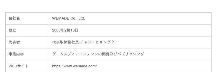 WEMADE Co., Ltd.(以下WEMADE、 本社:韓国、 京畿道城南市、 代表取締役:チャン・ヒョングク)は
