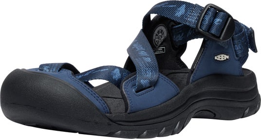 KEENオリジナルのつま先を守るトゥ・プロテクションを搭載したストラップサンダル。アッパー部にバックルを採用する事で脱ぎ履きが容易になり、フィット調整も可能。