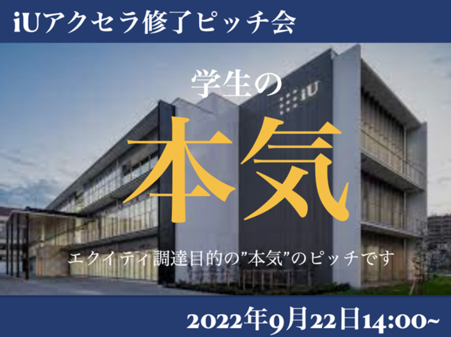 情報経営イノベーション専門職大学(東京都墨田区、学長 中村伊知哉、http://www.i-u.ac.jp、以下「iU」)の特別プログラム「iUアクセラ」の修了者によるピッチの開催が決定しました。『iUアクセラ』は、起業を目指しているiU生を対象に、事業化できるまでに引き上げるプログラムです。今回は、4つのチームがピッチをいたします。このピッチは「エンジェル投資家、シードVC」に向けて行われます。本イベントは学外の方も見学可能です。