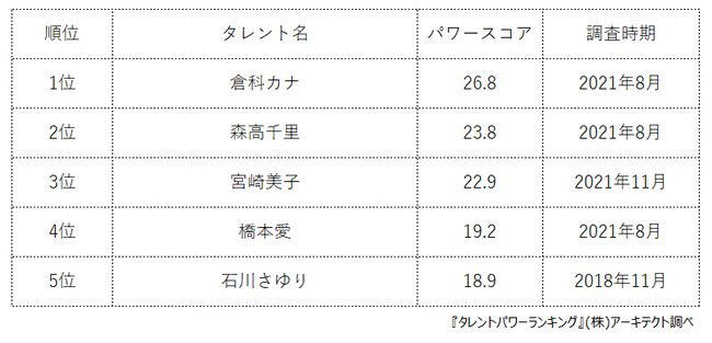 ○引用元が「株式会社アーキテクト」「タレントパワーランキング」である旨を明記