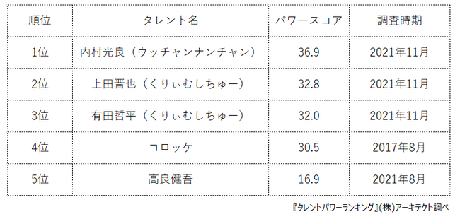 タレントパワーランキングを詳しく知りたい方はこちら↓