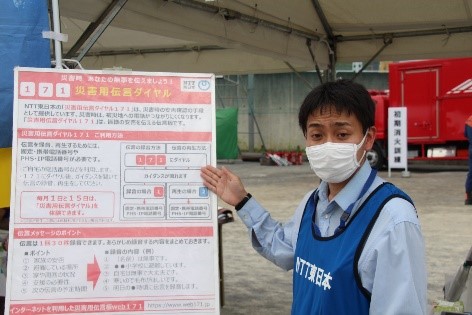 ・ブース展示による「災害用伝言ダイヤル(171)」「Web113」「災害時の復旧活動」等の紹介