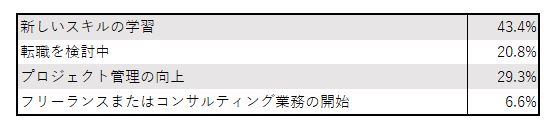 IT技術関連者は自身のスキルセットの向上とプロジェクト管理能力の向上に注力しており、これらのステップを通じてIT人材不足に対処しようとしています。また、転職や独立したプロフェッショナルとしての活動を検討する人も一部存在します。