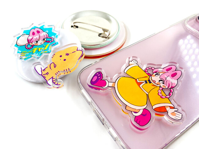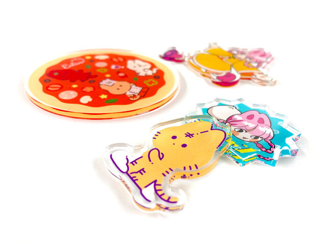 アクリルダイカットグッズを手軽に作成することができます。厚みとクリア感がかわいいアクリル素材を使用し、自由な形でアクリルグッズがお作り頂けます。デザインの自由度が高いため、個性的で特別なアクリルステッカーを作成したい方に最適です。