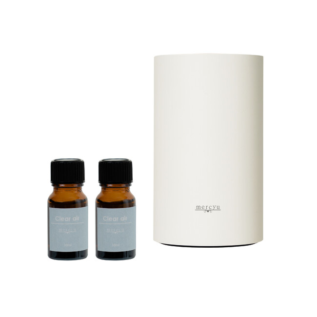 水を使わないため、アロマオイルが薄くならずしっかり香ります。このディフューザー専用アロマオイルとして、mercyu(メルシーユー)で大人気の3つの香りから、お気に入りの香り1種類を2本と本体のセット。専用オイルをお使いいただければ、アロマ本来の香りを贅沢にお楽しみいただけます。