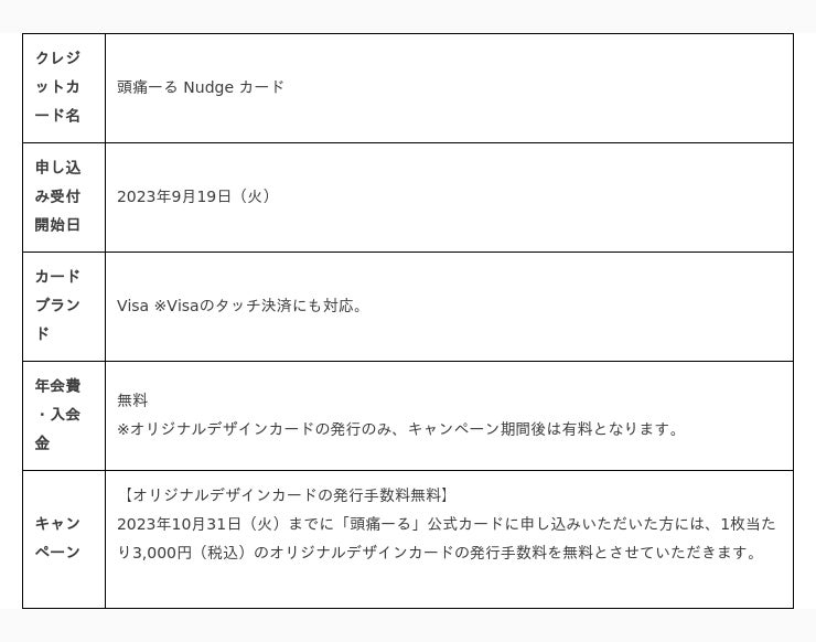 「頭痛―る」公式クレジットカードの申込受付は、Nudgeアプリにて2023年9月19日より開始いたします。