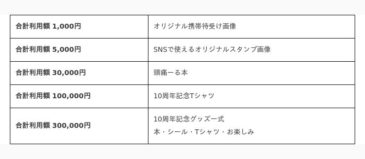 ~クレジットカードの利用額に応じて「頭痛―る」オリジナル限定特典をプレゼント~