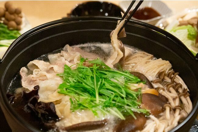 ・地元で獲れた猪肉を使ったしゃぶしゃぶ鍋と、年越しそばを堪能