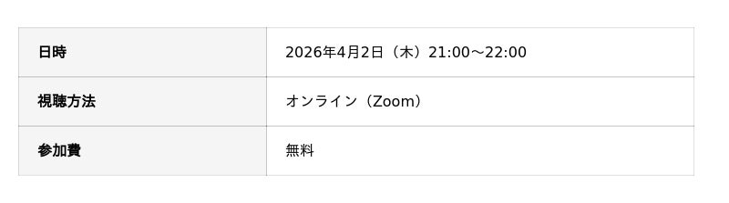 株式会社給与アップ研究所(本社:東京都渋谷区、代表取締役:高橋 恭介)は、2026年4月2日(木)21:00より、「人事評価スキルを収入とキャリアに変える方法」をテーマとした無料オンラインウェビナーを開催いたします。