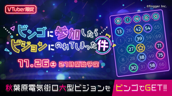 2022年11月26日(土)に、2023年1月放映の「秋葉原電気街口大型ビジョン」への出演権を賞品とした、VTuber限定イベント「ビンゴに参加したらビジョンにのれてしまった件」を開催いたします。