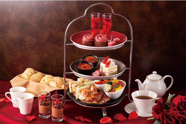 チョコレート本来の味わいや香りを引き出したスイーツに、真っ赤ないちごとバラを添えて心ときめく大人のバレンタインデーアフタヌーンティー