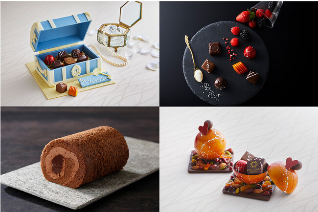 ブレンドしたビターチョコレートの濃厚な味わいに、キャラメリゼしたナッツを合わせることでより一層風味高く仕上げた「チョコレートムース」や、カカオ香るほろ苦いチョコレートのブリュレに甘いカラメルが相性抜群の「ショコラクレームブリュレ」など、チョコレート本来の深い香りや濃厚な味わいを引き立てることにこだわりました。バラに見立てたルビーチョコレートのガナッシュや真っ赤ないちごのジュレが、エレガントな雰囲気を演出し、バレンタイン気分をより一層盛り上げます。