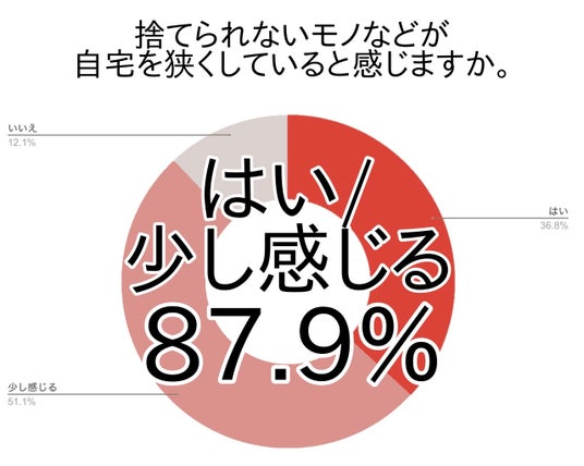そこで、アンケートでは、捨てられないモノなどが自宅を狭くしていると感じるか尋ねました。