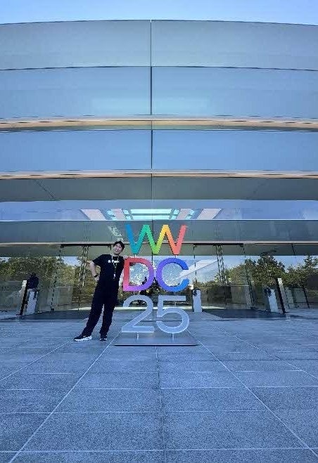 「WWDC25」のモニュメントと記念撮影